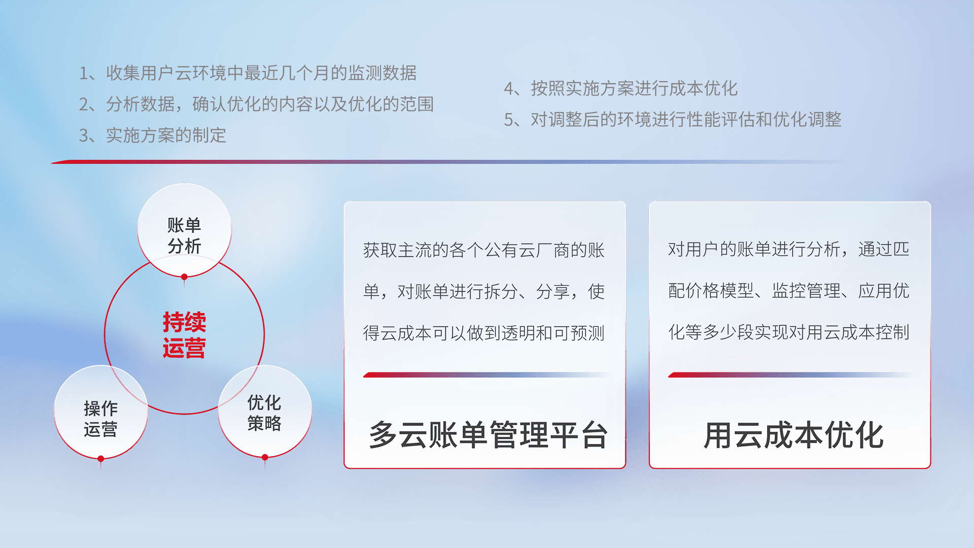 监控业务系统资源开销,,对资源的消耗精确计量,,,实现费用的透明化管理,,不断提升资源使用率,,,,调整资源购买方式,,,降低资源费用成本,,,用云成本可预测、、、用云费用可优化,,,,云资源配额有据可依。。